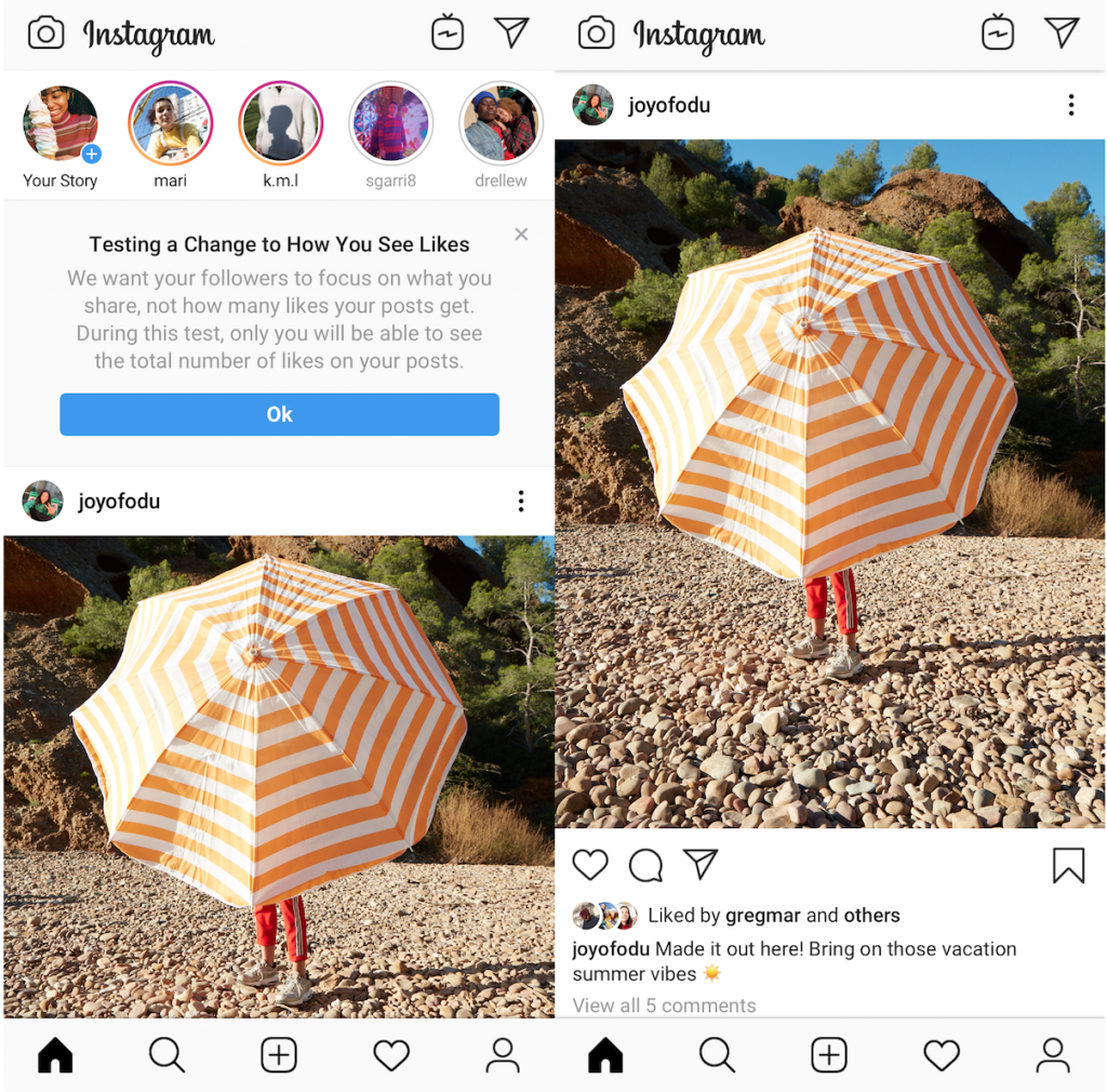 เจ้าของ platform อย่าง Instagram เลยอยากจะแก้พฤติกรรมตรงนี้ หากเจ้าของโพสต์รู้ว่าคนอื่น ๆ จะไม่เห็นยอด like ของโพสต์ว่ามีมากน้อยเท่าไหร่ เจ้าของโพสต์ก็ไม่จำเป็นต้องเป็นกังวลและทั้งฝั่งคนดูและคนโพสต์หันมาใส่ใจให้ความสำคัญและดื่มด่ำกับความสวยงานของรูปหรือวิดีโอที่นำเสนอแทน